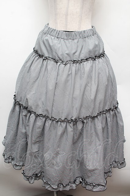 m petit by misako / NINA'Sギャザースカート L 黒×白 S-26-02-25-052-LO-SK-TE-ZS