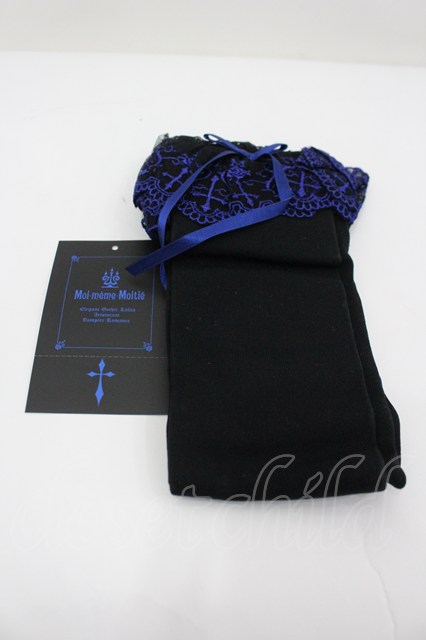 Moi-meme-Moitie / 逆十字レースオーバーニー 黒×青 I-26-02-25-123-MO-ZA-TE-ZI