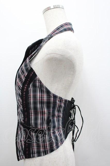 Ozz Croce / フロントZIPチェックベスト 黒チェック I-26-02-25-034-OO-TO-SA-ZI