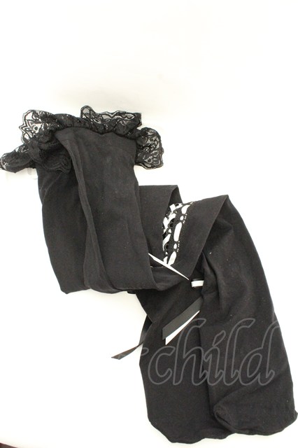 HANGRY&ANGRY / H&A ANGRY&KOUMOTITA KNEE HIGH LACE UP SOCKS ソックス ブラック×ホワイト O-26-02-26-1037-HN-ZA-OW-OS