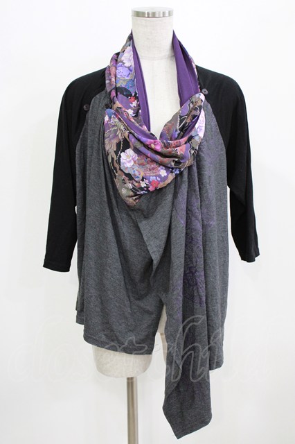 Qutie Frash / 和柄切替カットソーカーデ グレー H-26-03-02-053-QU-TO-KB-ZH [戻る]