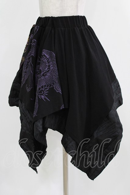 Qutie Frash / 和柄ミニスカート 黒 H-26-03-02-018-QU-SK-KB-ZH [戻る]