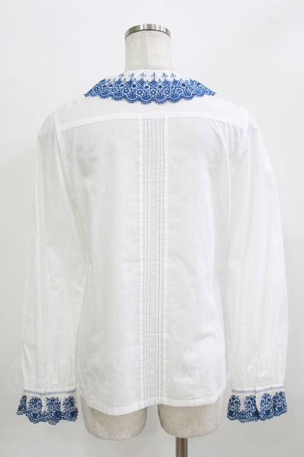 Jane Marple / フラワーレースとピンタックのブラウス オフ×ブルー H-26-03-02-058-JM-BL-KB-ZH