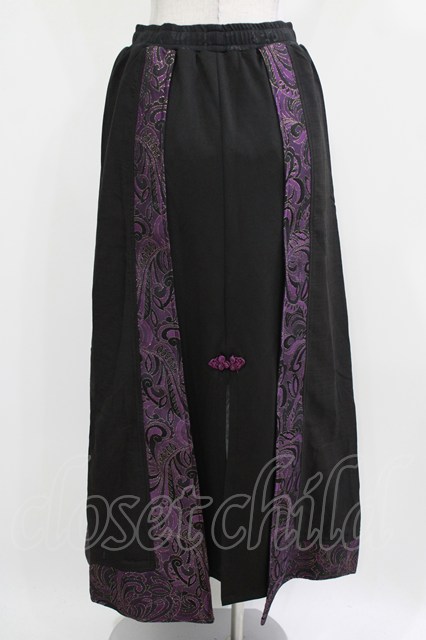 Qutie Frash / 和柄袴ロングスカート 黒×紫 H-26-03-02-025-QU-SK-KB-ZH
