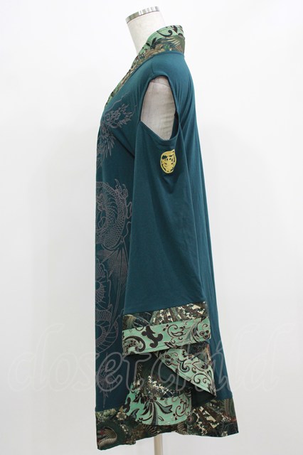 Qutie Frash / 肩開き着物カーディガン 緑 H-26-03-02-049-QU-TO-KB-ZH