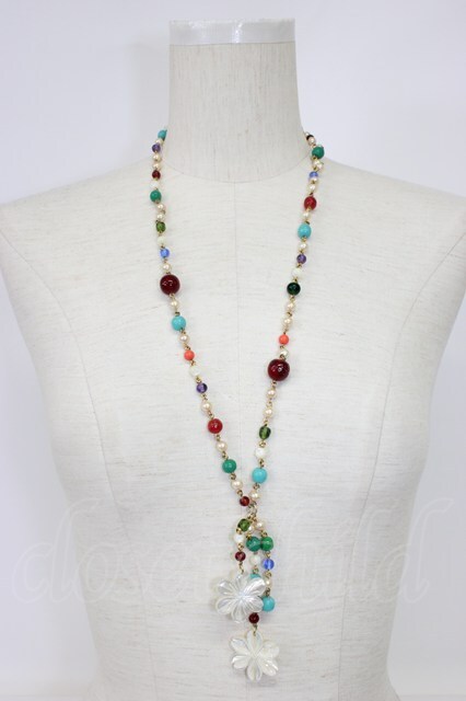 WONDERFUL WORLD / 桜モチーフビーズネックレス 白X青Xブラウン T-26-02-28-028-LO-AC-SA-ZT [戻る]