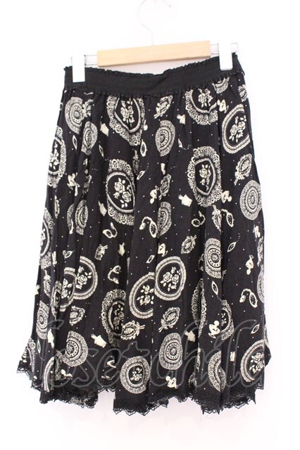 axes femme / モチーフプリントフレアミニスカート M クロ O-26-02-27-001-AX-SK-IG-OS