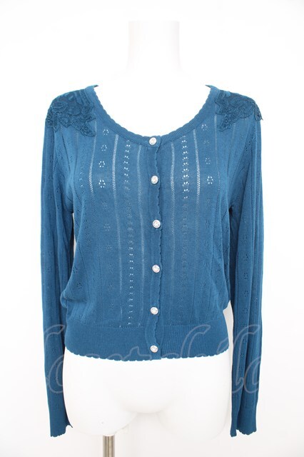 axes femme / ストライプ透かし編みニットカーディガン Bグリーン Y-26-02-27-036-AX-TO-SZ-ZY