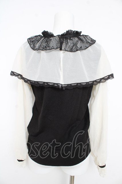 axes femme / レース重ねケープニットプルオーバー 黒 Y-26-02-27-038-AX-TO-SZ-ZY
