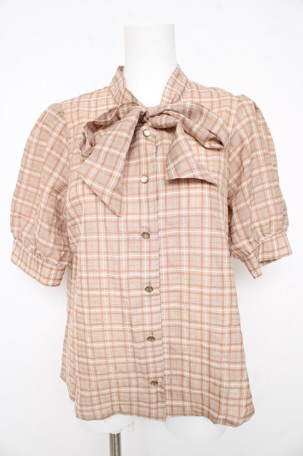 F i.n.t / シアーチェックボウタイブラウス F ベージュ/ホワイト Y-26-02-27-057-CA-BL-SZ-ZY [戻る]