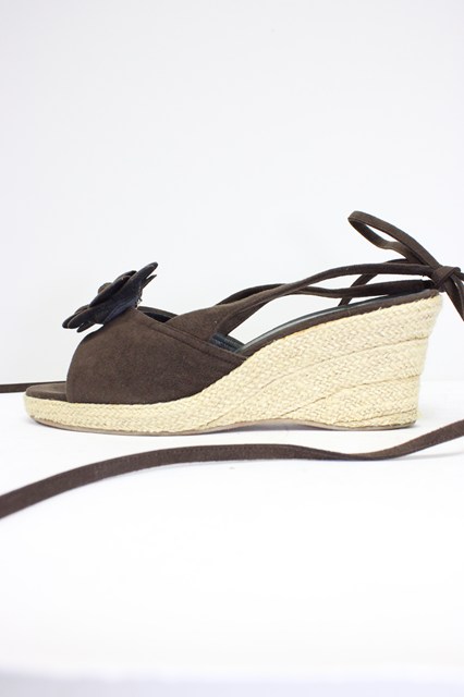 INGEBORG / フラワークリップ付きギャザーサンダル XL ブラウン T-26-03-01-034-LO-SH-SA-ZT