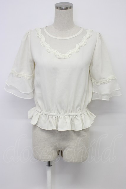 couture BY ROJITA / チュールスカラップ切替半袖ブラウス アイボリー T-26-03-06-002-GO-BL-SA-ZT
