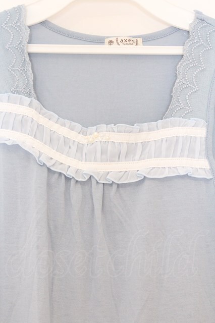 axes femme / シフォンフリルタンクトップ M サックス O-26-03-01-071-AX-TO-OW-OS