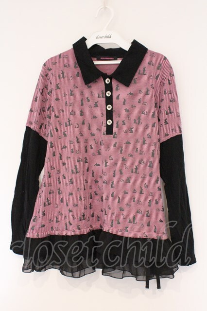 ALGONQUINS / うさぎシルエットボーダーカットソー F ピンク×ブラック O-26-03-01-101-AL-TO-IG-OS [戻る]