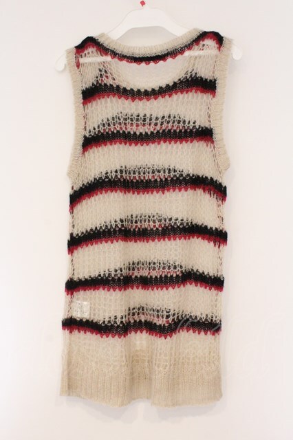 ALGONQUINS / ローゲージボーダーニットベスト F ベージュ×ブラック×レッド O-26-03-01-100-AL-TO-IG-OS