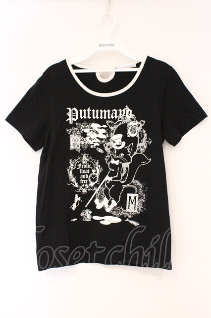 PUTUMAYO / ねこプリントTシャツ ブラック×ホワイト O-26-03-01-119-PT-TS-IG-OS