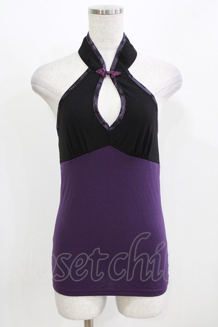 Qutie Frash / チャイナホルタートップス 紫×黒 H-26-03-03-060-QU-TO-KB-ZH