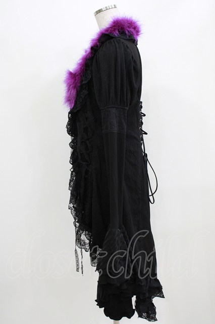 Qutie Frash / ファー付カーディガン 黒×紫 H-26-03-03-037-QU-TO-KB-ZH