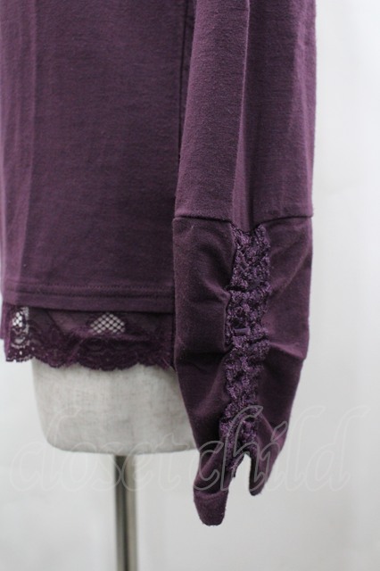 axes femme / 袖先レースハイネックカットソー パープル I-26-02-28-017-AX-TO-SA-ZI