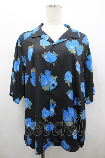 AXES-X / ストロベリープリントアロハシャツ M 黒X青 I-26-02-28-026-LO-BL-SA-ZI