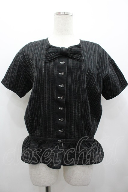 PINK HOUSE / 梯子レースストライプブラウス 黒 I-26-02-28-046-LO-BL-SA-ZI