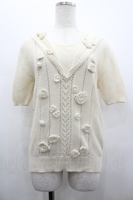 PINK HOUSE / カメリアモチーフニットセーラー襟トップス 生成り I-26-02-28-048-LO-TO-SA-ZI [戻る]