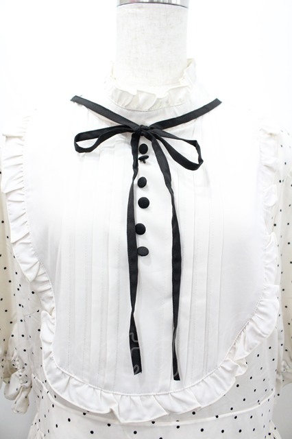 m petit by misako / 梨地水玉切り替えワンピース 4L 中白 I-26-02-28-076-LO-OP-SA-ZI [戻る]