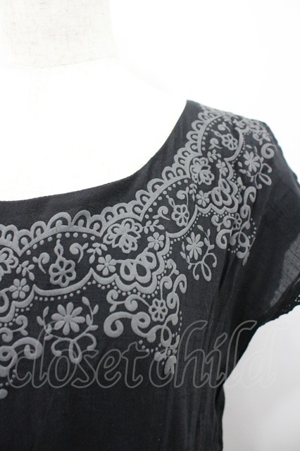 axes femme / プリント&裾メッシュ切替半袖ワンピース 黒Xグレー I-26-02-28-094-AX-TO-SA-ZI
