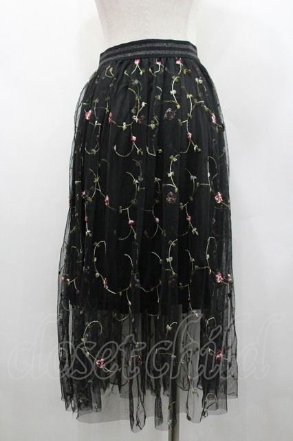 LOLITAその他(お買取対象外) / フラワー刺繍チュールスカート 黒 I-26-02-28-106-LO-SK-SA-ZI