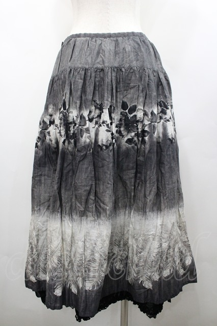 PINK HOUSE / 葉っぱプリントスカート 黒 I-26-02-28-119-LO-SK-SA-ZI
