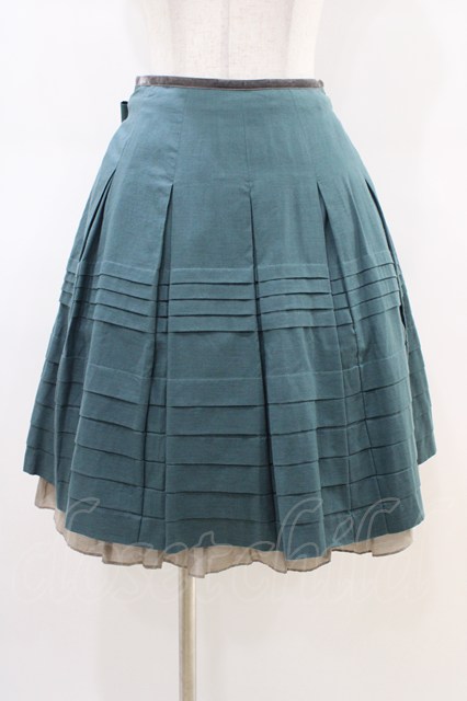 Jane Marple / 配色タックスカート M グリーン×グレー H-26-03-05-045-JM-SK-KB-ZH [戻る]