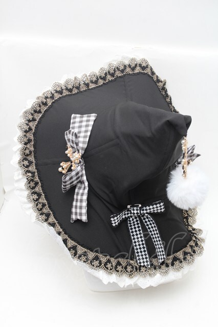 中国ロリータ / 裾レースシャーリングジャンパースカートセット 黒x白xキナリ S-26-02-28-044-LO-BL-HR-ZS
