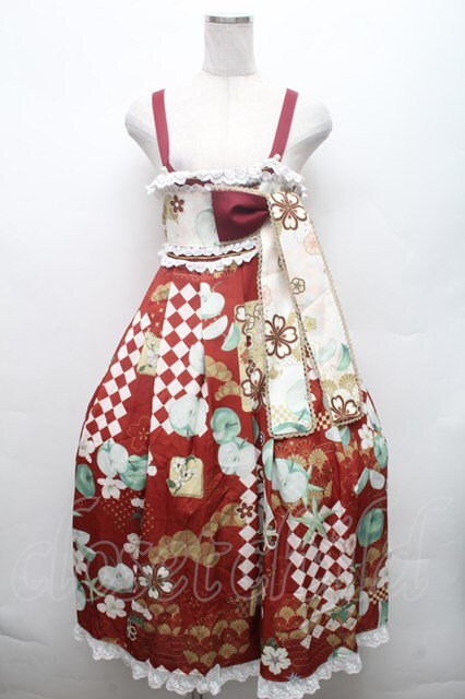 NyanNyan Star / 和柄x洋梨ジャンパースカートセット ワイン S-26-02-28-048-LO-OP-HR-ZS