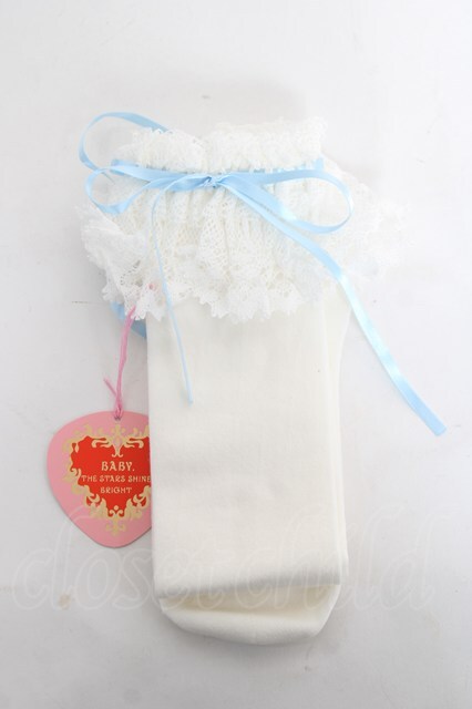BABY, THE STARS SHINE BRIGHT / リボン通しレースハイソックス 22〜24 シロ×サックス Y-26-03-01-061-BA-ZA-IG-ZY