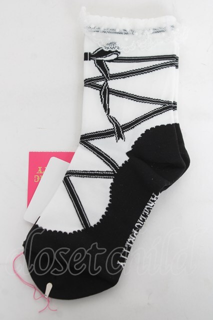 Angelic Pretty / トゥシューズ風クルー丈ソックス シロ×クロ Y-26-03-01-064-AP-ZA-IG-ZY