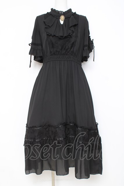 axes femme / カメオ付フレア袖ワンピース 黒 Y-26-03-01-161-AX-OP-SZ-ZY [戻る]
