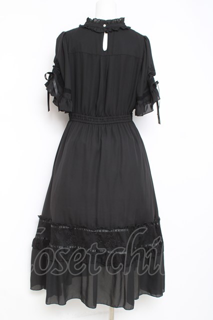 axes femme / カメオ付フレア袖ワンピース 黒 Y-26-03-01-161-AX-OP-SZ-ZY
