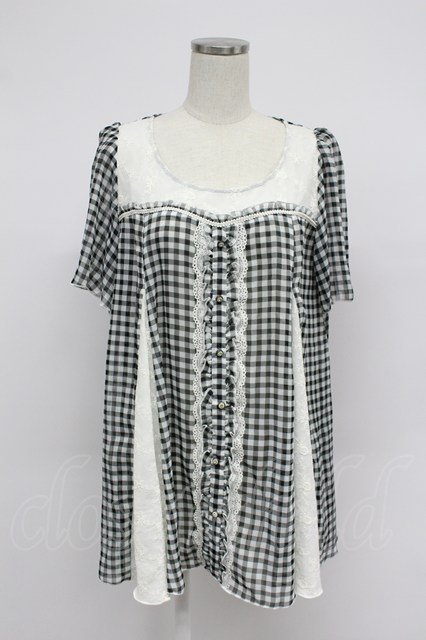 axes femme / ギンガムチェック切替シフォンブラウス風トップス 黒X白 T-26-03-07-036-AX-BL-SA-ZT [戻る]