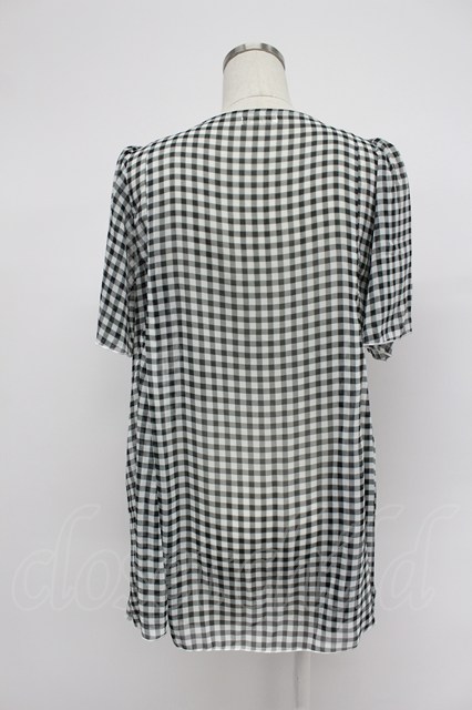 axes femme / ギンガムチェック切替シフォンブラウス風トップス 黒X白 T-26-03-07-036-AX-BL-SA-ZT