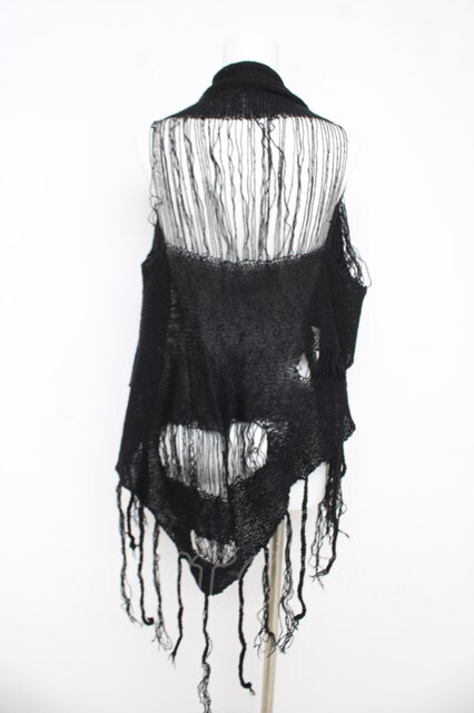 BPN / ダメージニット三角ストール ブラック Y-26-03-03-006-GO-ZA-SZ-ZY