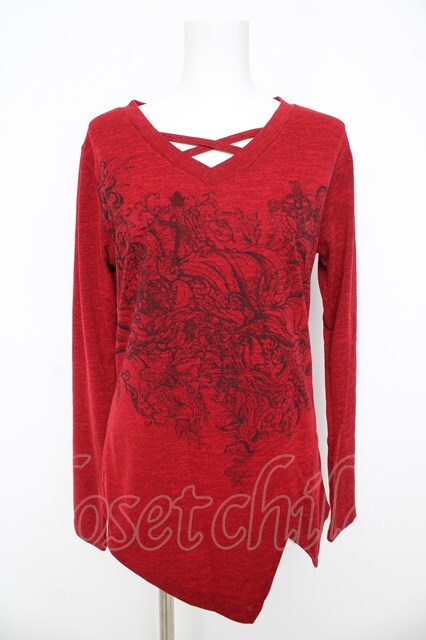 Rozen Kavalier / 胸元クロスプリントプルオーバー 赤 Y-26-03-03-061-OO-TO-SZ-ZY