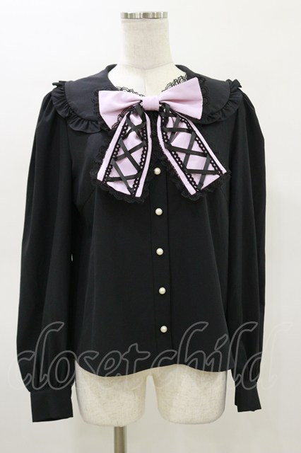 Jamie エーエヌケー / スピンドルリボンブラウス M ブラック/ピンク H-26-03-05-1037-LO-BL-NS-ZH [戻る]