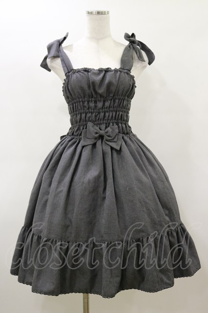 metamorphose / 肩リボンストライプジャンパースカート Free グレー H-26-03-05-1074-ME-OP-NS-ZH [戻る]