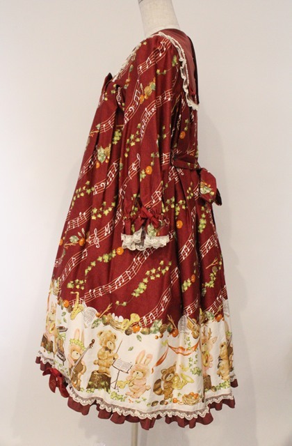 metamorphose / 森の音楽隊Aラインワンピース えんじ系 O-26-03-02-027-ME-OP-OW-OS