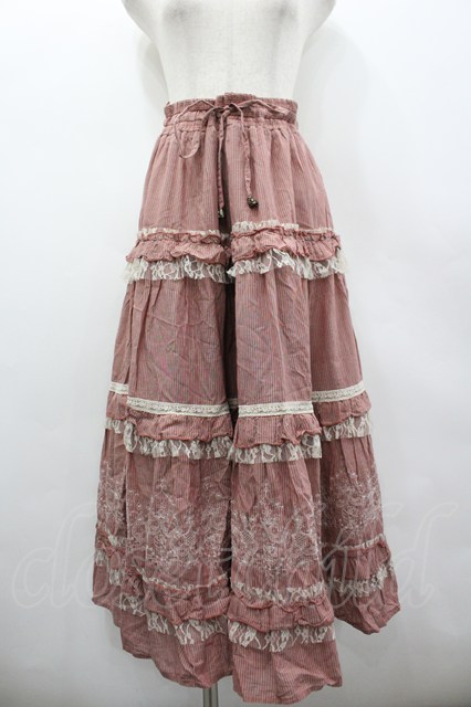 axes femme / 裾刺繍ストライプスカート M 赤×ブラウン I-26-03-02-090-AX-BL-TE-ZI