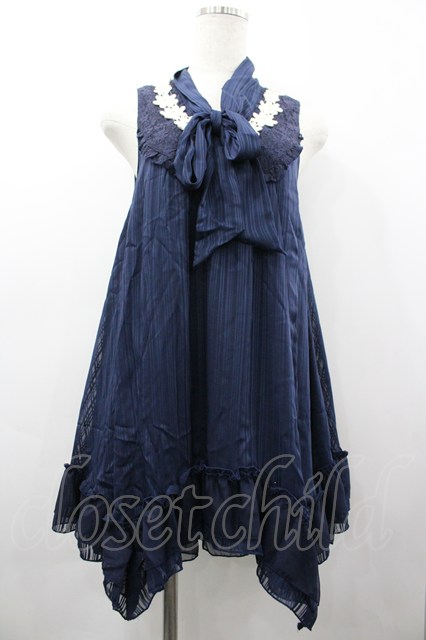 axes femme / ボウタイストライプチュニック M ネイビー I-26-03-02-050-AX-OP-SA-ZI