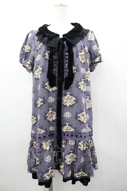 axes femme / バラ柄シフォンワンピース パープルX白X黒 I-26-03-02-077-AX-OP-SA-ZI [戻る]