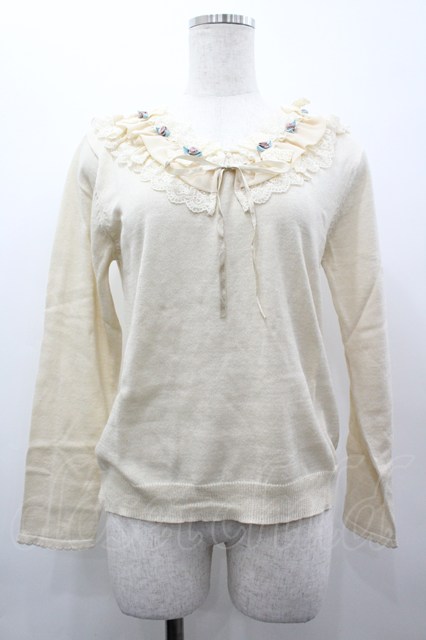 axes femme / 襟元バラ使いニットプルオーバー M キナリ I-26-03-02-002-AX-TO-TE-ZI