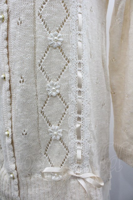 axes femme / 縦リボン通しニットカーデ M ベージュ I-26-03-02-010-AX-TO-TE-ZI