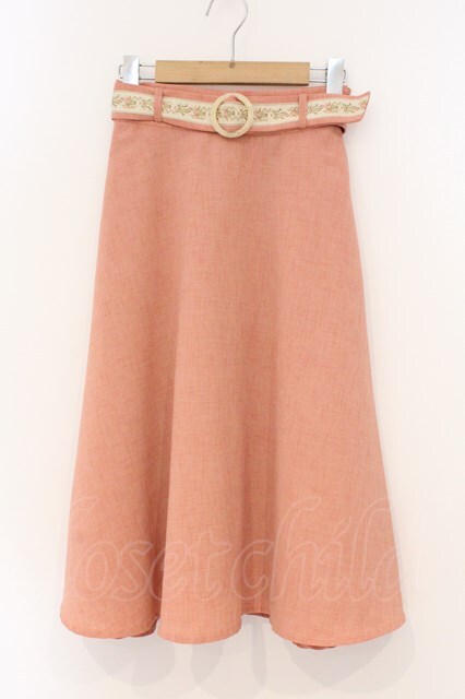 Fi.n.t / ジャガードリボンベルト付きフレアースカート F コーラルピンク O-26-03-03-054-CA-SK-OW-OS [戻る]